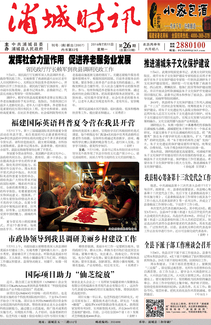 | 2016-07-14 08:32:23??來源: 責(zé)任編輯:浦城新聞網(wǎng) 我來說兩句 |