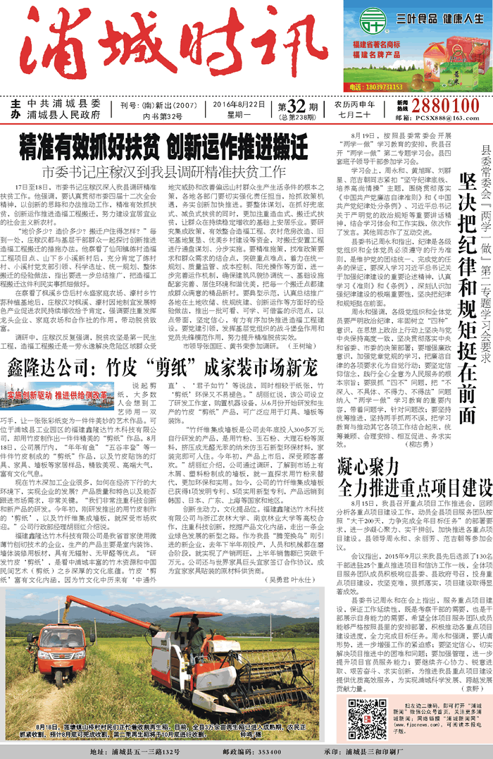 | 2016-08-23 11:10:25??來源: 責任編輯:浦城新聞網(wǎng) 我來說兩句 |
