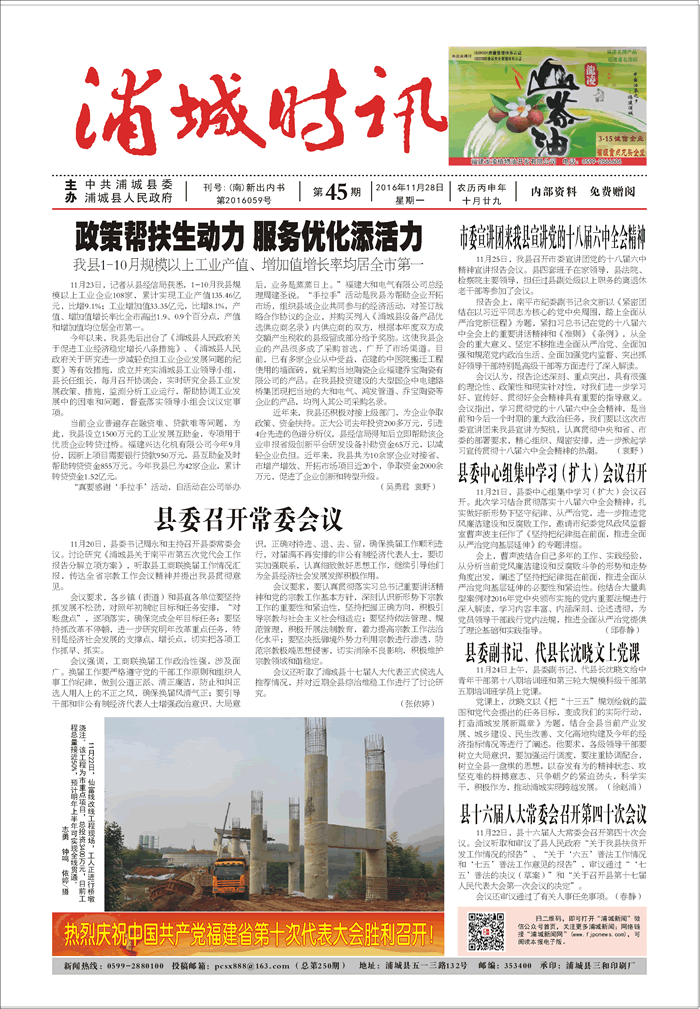 | 2016-11-30 11:04:18??來源: 責任編輯:浦城新聞網 我來說兩句 |
