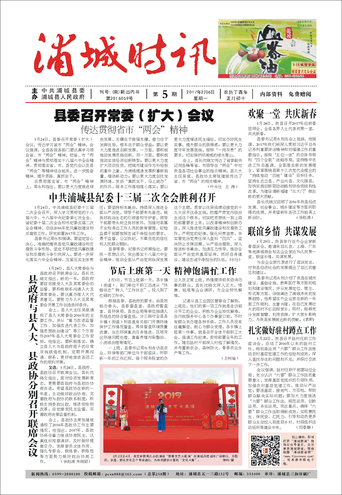 | 2017-02-07 09:06:57??來源: 責任編輯:浦城新聞網 我來說兩句 |