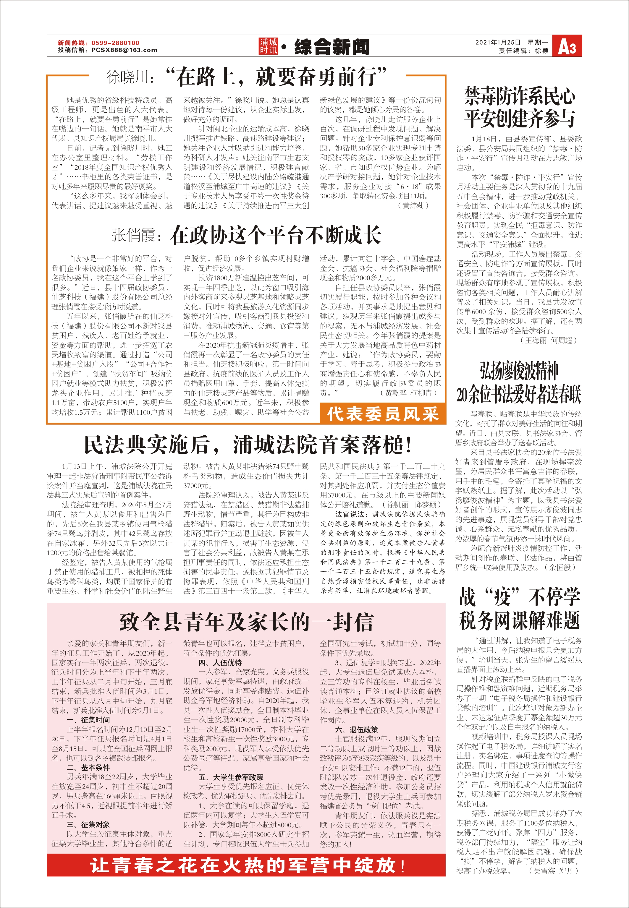 | 2021-01-25 10:14:21??來(lái)源:浦城新聞網(wǎng) 責(zé)任編輯:肖練冰 我來(lái)說(shuō)兩句 |