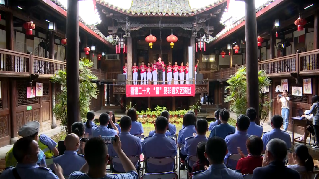 為迎接6月11日的文化和自然遺產日,6月10日上午,省級文物保護單位三山會館舉辦了“喜迎二十大‘福’見非遺”文藝演出,并邀請了浦城縣公安、交警等部門的工作人員前來觀看,感謝廣大執法工作者的辛勤付出,帶大家一同感受浦城非遺文化的魅力。 活動現場,來自贛劇藝術傳承發展中心的表演藝術家們,為到場的民警和群眾獻上了精彩紛呈的演出。贛劇表演《說唱浦城》《古詩贛韻》《洪湖水浪打浪》,閩派古琴演奏《云水禪心》,舞蹈《美人吟》《南浦春韻》等節目,讓觀眾們陶醉在傳統文化的韻味中,掌聲此起彼伏?;顒舆€邀請民警們參觀館內展覽,由縣博物館館員趙真友講解浦城的歷史文化,營造傳承優秀傳統文化的濃厚氛圍。 縣公安局民警葉濤:“他們的節目很精彩,我們看了十分感動,十分感謝他們?!?/span> 蓮塘派出所輔警余秀貞:“今天非常感謝縣博物館邀請我們觀看非遺文化演出。演出非常精彩,我們倍受鼓舞,讓我們感受到了浦城非遺文化的精髓,我們以后要更加努力地工作,為浦城治安穩定奉獻一份力量?!?/span>
