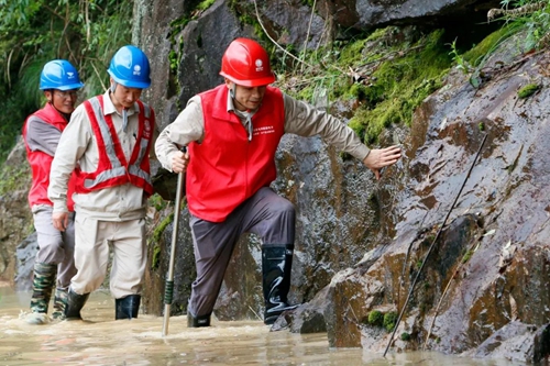 永興供電所黨員干部在10千伏古上線開展搶修 面對暴雨紅色預警,該公司快速響應,第一時間開展緊急處置。道路塌方,交通中斷,該公司石陂供電所黨員服務隊徒步3公里先行趕赴受災現場參與搶險救援工作,排查電力線路設備受損情況,開展搶修。