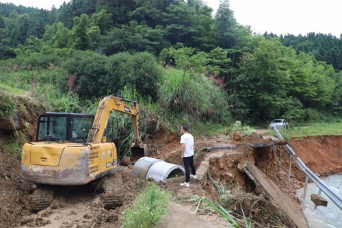 疏通道路塌方 在水尾村道路塌方路段,鎮(zhèn)村干部緊急調(diào)配挖掘機(jī)、推土機(jī)對(duì)道路塌方進(jìn)行清理作業(yè),疏通交通路線。同時(shí),水北村村干部組織人員對(duì)被洪水沖斷的自來(lái)水管進(jìn)行搶修,2個(gè)村6000多人的供水也已全面搶通。