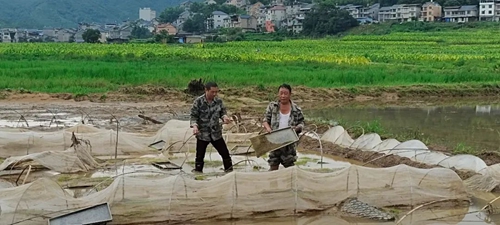 清理塌方 該村另一處有路段塌方,浦城縣應(yīng)急救援第六方陣(交通部門(mén))及時(shí)到現(xiàn)場(chǎng)處理,該村黨支部書(shū)記王新濤現(xiàn)場(chǎng)協(xié)調(diào)指揮,不一會(huì)兒,道路及時(shí)得到疏通,道路恢復(fù)正常交通。“昨天的大水淹沒(méi)了一些田,鎮(zhèn)里農(nóng)技站及時(shí)給村民補(bǔ)發(fā)了秧苗,村民回去補(bǔ)種,爭(zhēng)取把損失降低到最小。”王新濤告訴記者,該村總體財(cái)產(chǎn)損失是比較小的。 “在這次洪災(zāi)來(lái)之前,我們就做了充分的準(zhǔn)備,提前轉(zhuǎn)移了人員和重要財(cái)產(chǎn),做到了沒(méi)有人員傷亡,把財(cái)產(chǎn)損失減少到最小。”富嶺鎮(zhèn)黨委副書(shū)記、鎮(zhèn)長(zhǎng)伍麗穎說(shuō)。 下一步,該鎮(zhèn)將繼續(xù)加強(qiáng)開(kāi)展災(zāi)后的安全隱患排查以及消殺工作,做好道路巡查,房屋排查,分類修繕重建,嚴(yán)防次生災(zāi)害的發(fā)生。 濠村鄉(xiāng) 連續(xù)的強(qiáng)降雨,導(dǎo)致濠村鄉(xiāng)大面積農(nóng)作物被淹,針對(duì)今年受災(zāi)水淹情況,濠村鄉(xiāng)科技特派員吳火金及時(shí)到現(xiàn)場(chǎng)指導(dǎo)種植戶排除田間積水、追加肥料、防治病蟲(chóng)害等,并為今后一段時(shí)間的田間管理和病蟲(chóng)害防治提出了指導(dǎo)性意見(jiàn),提醒農(nóng)戶什么時(shí)間用藥、什么時(shí)候補(bǔ)施肥料,跟他們進(jìn)行詳細(xì)解答。