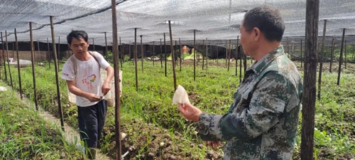 指導(dǎo)農(nóng)戶防治病蟲(chóng)害 “洪水之后,吳站長(zhǎng)及時(shí)指導(dǎo)我們?yōu)暮笤趺醋觯贾玫煤芮宄瑢?duì)恢復(fù)竹蓀生產(chǎn)的田間清溝排水、防治病蟲(chóng)害及竹蓀的烘烤技術(shù),他都做了技術(shù)指導(dǎo),講得非常詳細(xì)。”濠村鄉(xiāng)濠村村貧困戶陳軍說(shuō)。