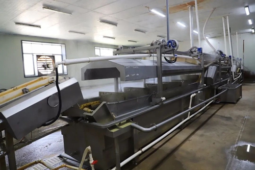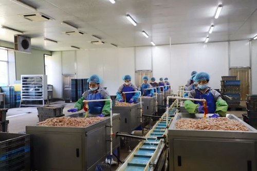 燙雞腸 “自圣農集團雞腸加工廠在萬安鄉建成以來,不僅讓村民能夠就近就業,增加村民收入,還帶動了周邊服務,讓萬安鄉經濟‘活’起來。”萬安鄉人大主席王彪說。 雞腸加工廠采取“公司+黨支部+加工廠+村民”的模式,由圣農(浦城)集團前期提供資金、場地、設備等新建標準化的雞腸加工廠,后期為加工廠提供雞腸原料。村黨支部委托第三方公司對雞腸加工廠進行運營,并統一進行質量監管和數量登記,集團黨支部給與相應加工費用,所生產的雞腸也由集團包銷,統一回收銷售,讓村民不愁銷路。集團黨支部還派技術員無償對村民進行技術培訓,讓村民熟練掌握技能,提高產能。