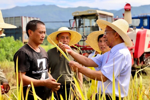 “謝華安院士專家團隊科技特派員工作站”為浦城糧食產業注入了“科技力量。”圖為謝華安院士在指導當地糧農種植再生稻。葉永仕/攝 2021年11月掛牌成立的“謝華安院士專家團隊科技特派員工作站”便是其中的重要成果之一,在該工作站的指導參與下,福建省水稻研究所在仙陽鎮陽墩村開展了22個水稻品種(組合)大區篩選試驗,成功篩選出福香占等適合浦城種植的優質稻當家品種。 陸佐灃介紹,深化實施科特派制度的同時,浦城積極主動對接高校院所,通過與福建農科院、江南大學、廈門大學、福建農林大學等高校院所合作,成立“浦城米業產業研究院”、“浦城再生稻科技小院”等科技平臺合作,以科技特派員為紐帶,實施開發一批高科技含量項目。 自1999年以來,浦城縣從高校院所引進大米產業新品種、新技術近百項(種),為龍頭企業建立訂單基地二十多萬畝,銷售浦城大米價值三十多億元。 為打通科技助農“最后一公里”,浦城積極推廣水稻生產全程機械化,建立親本繁殖核心基地等,目前全縣良種覆蓋率達98%以上, 同時積極推進農田建設管理數字化行動,利用遙感、大數據分析等現代信息技術,創新研發縣級農田建設數據資源管理系統“掌上農田”,實現農田資源全要素、空間化管控,為高標準農田項目立項提供“一鍵式”分析服務。