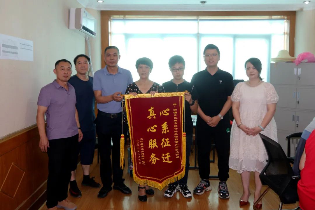 “非常感謝政府幫我解決了當下最困難的事情。”7月6日,原住文化弄被征收戶蔣榮仙將一面寫著“真心服務 心系征遷”的錦旗獻給浦城縣南浦片區城市綜合開發項目第九片區征遷工作組,感謝他們在征遷過程中熱心、耐心、貼心的服務。