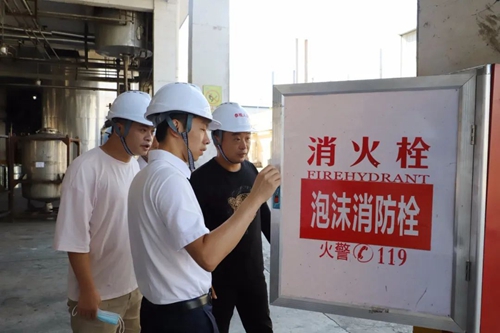 在成杰高分子材料有限公司現場查看消防栓使用情況