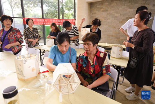 9月29日,在愛山街道利民社區,老年居民參加花燈制作。 重陽節前夕,浙江省湖州市吳興區愛山街道開展系列主題活動,弘揚傳統民俗文化,倡導尊老、敬老、愛老的傳統美德。 新華社記者 翁忻旸 攝 |