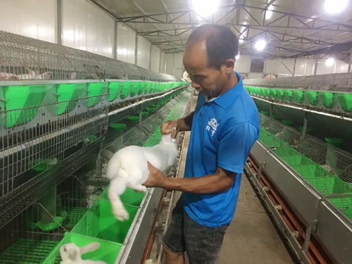 查看母兔進食及產后恢復情況 “做生意要看準市場,失敗不可怕,可怕的是你不知道敗在哪里!”為了搞清養殖盲區,易長輝先后跑到浙江、河北、山東等地學習養殖技術、疫病控制技術等。功夫不負有心人,在2個多月的來回奔波中,他不僅學到了先進的養殖技術、疾病管理和防疫措施,還找到了幾條銷售渠道,解決了毛皮銷售問題,這讓他的內心又重新振奮了起來,成立了專業合作社養殖種兔。 引種、養殖、對接商家、尋找散戶……一系列操作下來,他的合作社社員發展到150人,年出欄商品兔達到20余萬只,他還在2018年時獲得了南平市優秀農村實用人才稱號。 隨著市場行情的變化和國內人工成本的不斷增加,獺兔的養殖利潤大不如前,如何進行節本增效?為此,易長輝注重學習,經常參加省市縣舉辦的培訓班,與專家們交流學習養殖經驗。