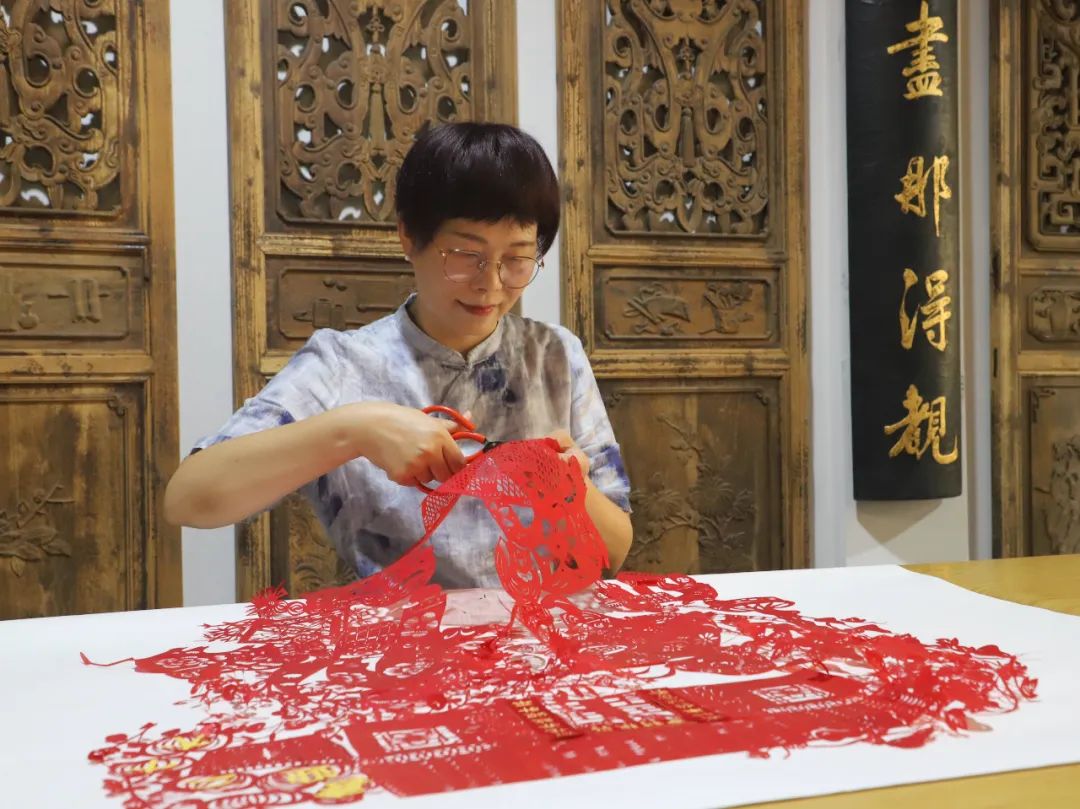 浦城剪紙省級非遺傳承人張薇正在剪制“喜迎二十大”主題剪紙 “這幅剪紙作品中,我采用了變形、夸張、陰陽結合等剪紙創作手法,以‘魚花’‘牡丹花’‘梅花’‘喜鵲花’‘葫蘆花’等象征吉祥的剪紙紋樣,表達對祖國、對家鄉的美好祝愿。”張薇說,近年來,隨著經濟社會的發展,我國綜合國力顯著提升,人民群眾逐步實現從溫飽到小康的歷史性跨越,作品中農家小院的生活場景是國家通過實施鄉村振興戰略,實現人民生活富足的一個縮影。近期,“剪花嫂”們還剪制了《黨旗飄飄 永遠跟黨走》《喜迎二十大 奮進新征程》等系列剪紙作品向黨的二十大獻禮,以傳統民間藝術形式回顧黨的光輝歷程,謳歌黨的豐功偉績、民族團結進步,贊美祖國大好河山,表達對黨的二十大勝利召開的期待與喜悅。(邱春靜 周文倩)