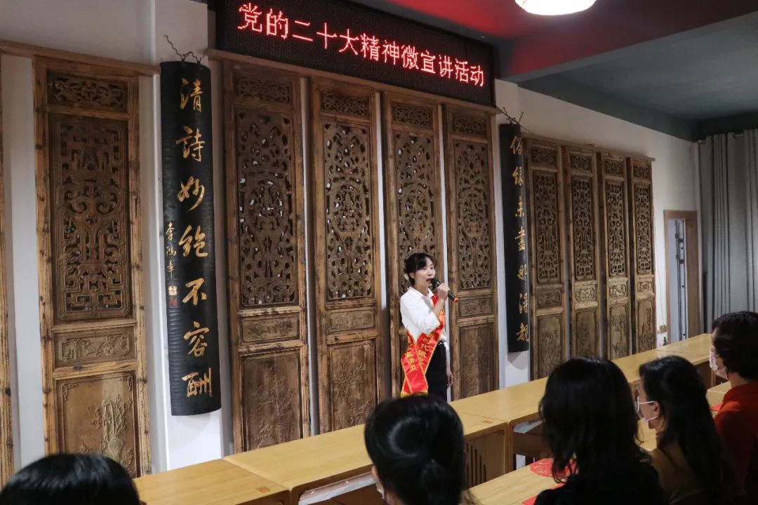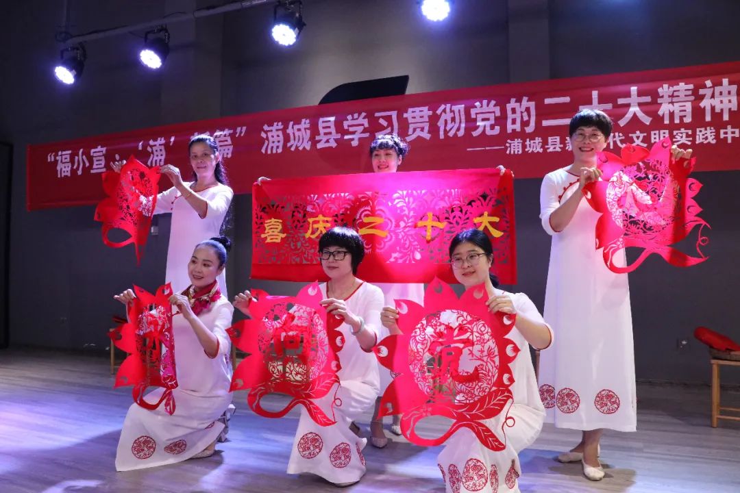 “福小宣·‘浦’新篇”新時(shí)代微宣講活動(dòng)走進(jìn)剪花嫂剪紙坊 宣講員言語從容舒緩,將黨的二十大精神與振奮人心的發(fā)展故事娓娓道來;“剪花嫂”們配樂表演“藝心永向黨”,紅紙絮碎姍姍而下,充分展示了浦城剪紙的獨(dú)特魅力;國家非遺項(xiàng)目浦城剪紙省級(jí)非遺傳承人周冬梅講述了《喜慶二十大》剪紙作品創(chuàng)作初衷,現(xiàn)場(chǎng)觀眾在欣賞作品之余,也紛紛拿起紅紙與剪刀,體驗(yàn)非遺文化的魅力。