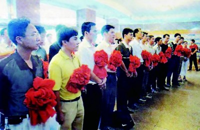 25年前,南平市首批科技特派員佩戴大紅花,下到鄉村開展科技服務。資料圖片