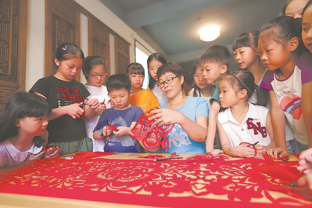 浦城縣利用暑期及周末時間定期開展剪紙公益課。圖為小朋友在學(xué)習(xí)剪紙。袁野/攝 新“花樣” 浦城剪紙,已有1000余年歷史。它的“出生”,與歷史上的大遷徙有關(guān)。 浦城地處福建最北端,與浙江、江西相鄰,歷史上是閩越族活動中心。西晉時,中原士族南遷,北方的剪紙手藝隨之傳入浦城。經(jīng)過唐、宋的長足發(fā)展,元、明興盛繁榮,至清代,藝術(shù)水平與使用均達(dá)到鼎盛,形成兼具中國北方與南方的風(fēng)格特色。 清道光年間,寓居浦城的文學(xué)家梁章鉅倡導(dǎo)剪紙并加以弘揚(yáng)。在他的倡導(dǎo)下,吉祥字句轉(zhuǎn)以吉祥花樣代之,在文人的參與推動下,浦城剪紙創(chuàng)作呈現(xiàn)出既飽含文人氣息又深具文化底蘊(yùn)、既花樣繁多又內(nèi)容豐富的特點(diǎn)。 千年流傳,浦城剪紙地域特征明顯,具有很高的歷史研究價(jià)值、民俗研究價(jià)值、閩越文化研究價(jià)值。但是隨著社會的變革,手藝人減少,浦城剪紙瀕臨失傳。 “2003年,浦城縣成立了民間剪紙協(xié)會,開始探索創(chuàng)作適合當(dāng)前審美情趣、富有浦城地域特色的剪紙作品?!逼殖强h文化館館長祖碧霞介紹,為了搶救這項(xiàng)民間藝術(shù)瑰寶,保存老一輩手中的剪紙“活化石”,工作人員遍訪了各村的剪紙藝人,歷經(jīng)20多年,建立民間藝人檔案150余人,共收集整理傳統(tǒng)剪紙紋樣2000余張。 如何讓古老的民間剪紙藝術(shù)重回人們的視線?當(dāng)?shù)刈隽嗽S多嘗試,特別是去年10月,浦城、漳浦、霞浦三地以“浦”為線,共同簽訂“三浦并臻”文化聯(lián)盟協(xié)議,以共建共贏為理念,努力實(shí)現(xiàn)陣地共建、平臺共享、人才共育、品牌共創(chuàng),浦城剪紙成為受益者。