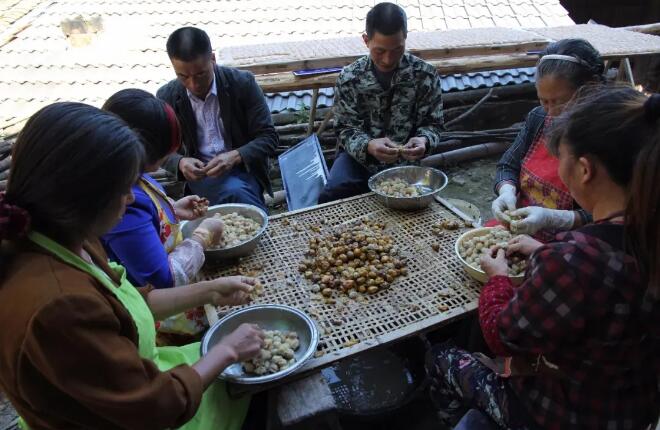 雙同村村民一同剝酸棗,準備制作酸棗糕。徐強/攝 生態美,文旅興,帶動了鄉村富。雙同村還依靠獨特的山水生態資源優勢,按照生態最美、生產最美、生活最美“三個最美”的理念,打造鄉村“共富工坊”。 在青磚黛瓦的“古法紙燈籠加工坊”內,村民們正忙著扎燈架、糊燈紙,一片繁忙景象。“我們村的好東西很多,要讓它們走出大山、走進市場。‘共富工坊’發揮了很好的窗口作用,將進一步帶動我們鄉村產業發展?!编l賢朱繼富介紹,“共富工坊”是涵蓋電商、文創、特色農產品展銷、鄉賢招商、人才創業等于一體的綜合平臺,吸引了大量村民走出家門,進“坊”就業。目前,“共富工坊”內的丹桂茶、古法紙燈籠、青白瓷等區域已陸續布置完成,后續還將陸續完善其在“非遺”特色課程開設、助農直播、農技培訓等領域的服務功能,激發“旅游+農產品”的產業潛能,助力村集體資產增值和村民增收。據了解,2023年,雙同村村民人均收入近4萬元。 “村里除了每年給我繳納醫保,到年終時,還會給我們60歲以上的老人發放1400元的慰問金,而且還給全體村民繳納醫保、社保。”88歲的村民陳小梅細數著身邊的“幸福”,山林間的夕陽映在臉上,笑容特別開心。(高建進 馮家照 邱春靜) |