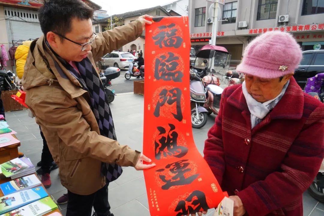 活動中,通過向來往群眾宣傳優良家風文化、道路交通安全、“平安三率”、日常防火用電安全、消防安全、食品藥品安全、全民健康網格化、家庭醫生、健康生活、關心關愛特殊家庭等,進一步弘揚新風正氣,深入開展“三正”主題活動,提高群眾日常生活安全意識,提升群眾對平安建設知曉率。當天,發放傳單、宣傳冊500余份,300余群眾到廖俊波家風家教展示館參觀打卡。 筆墨飄香 暖心送福 活動中,邀請書法老師到現場揮毫潑墨,筆走龍蛇,將美好的祝愿和傳統的年味凝聚于紅紙之上,化作一幅幅寓意吉祥、充滿喜慶的春聯。現場群眾們熱情高漲,紛紛請老師幫忙書寫自己心儀的新年楹聯。