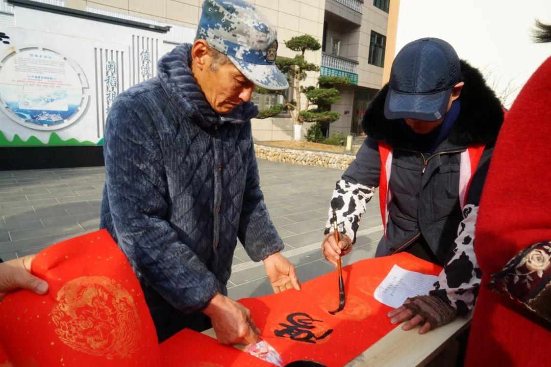 為滿足群眾多樣化的需求,志愿者們還同步發放成品自粘春聯供群眾選擇,群眾們邊欣賞春聯精妙的創作過程,一邊挑選中意的春聯。7日上午,共計送出春聯220余副,讓管厝群眾深深感受到來自管厝鄉黨委、政府的溫暖與關懷。