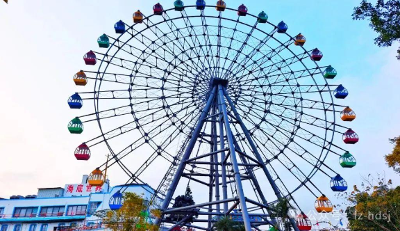 圖源:福州左海海底世界 福建省首座時(shí)鐘主題摩天輪 福州兒童公園摩天輪 整機(jī)外觀似一個(gè)優(yōu)美的鐘表表盤 該摩天輪直徑達(dá)25米 輪外裝掛16個(gè)熱氣球造型座艙 每個(gè)座艙可乘坐4人 擁有360度全景視野 |