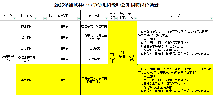 日前,浦城縣教育局官網公開發布《2025年中小學教師公開招聘公告》,此次招聘延續“兵教融合”機制,面向退役軍人群體特設“仙陽中學體育教師”專項崗位。