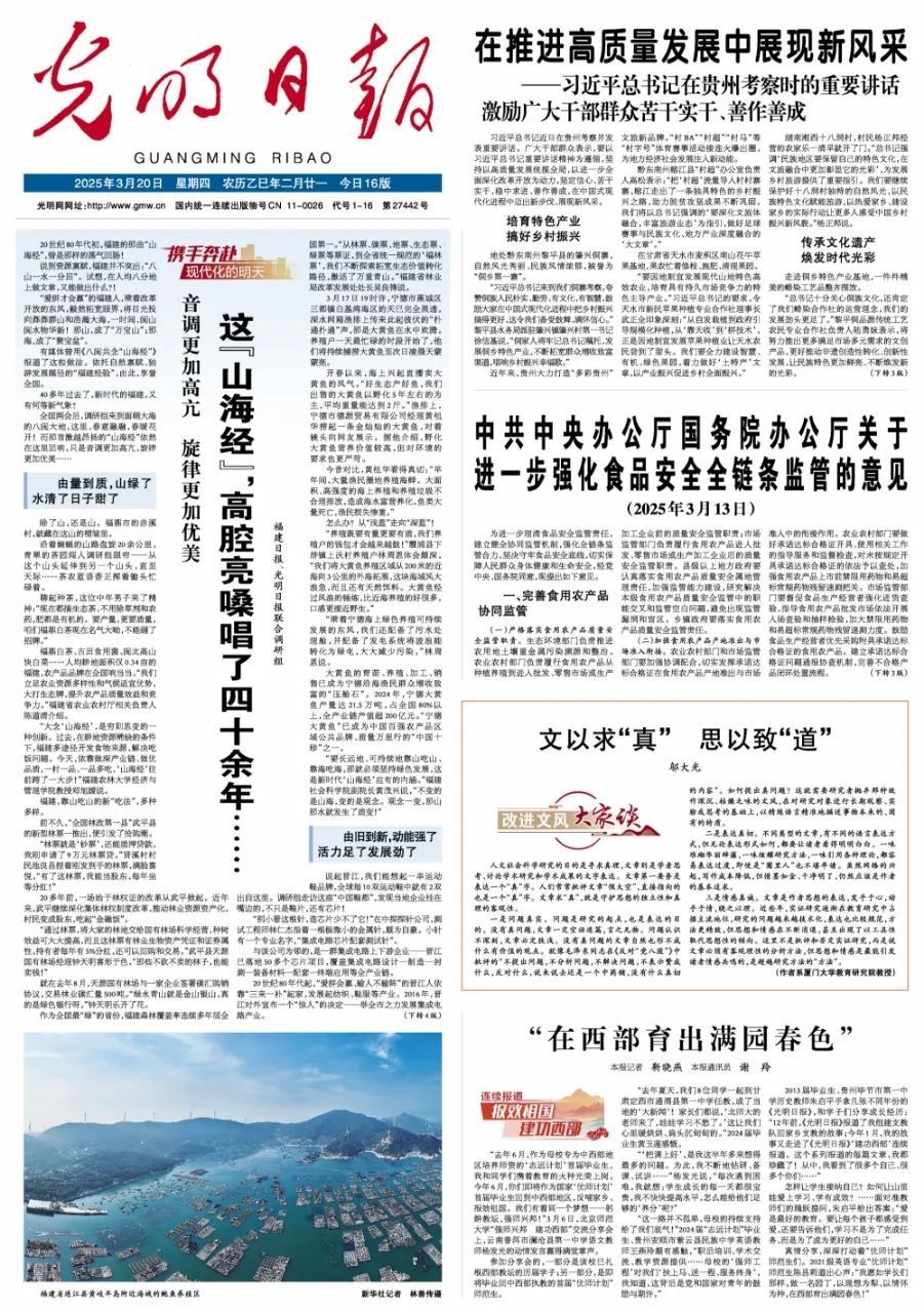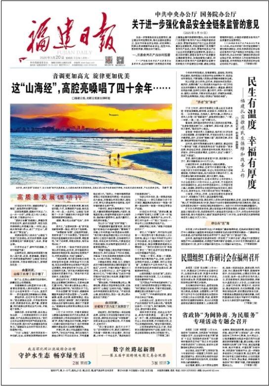 《光明日報》2025年3月20日第01版 《福建日報》2025年3月20日第01版 編者按 “八山一水一分田”,福建的資源稟賦并不突出,卻硬是以“愛拼才會贏”的精神,開辟出獨特發展道路。一曲蕩氣回腸的“山海經”,讓閩山閩水煥發出新的生機。光明日報始終篤行開門辦報傳統,全國兩會后與福建日報組成聯合調研組,在面朝大海、春意融融的八閩大地上,共同踐行“四力”,共同記錄新時代新福建的新氣象,并于今日共同在頭版頭條刊發調研文章。且聽《這“山海經”,高腔亮嗓唱了四十余年……》