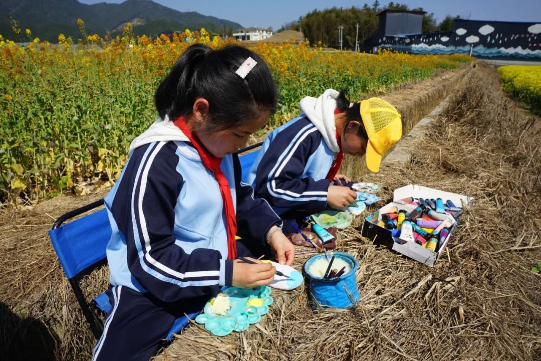 “油菜花田太美了,我超級興奮,感覺靈感源源不斷,畫里的顏色都感覺更鮮艷了!”3月21日,浦城縣石陂鎮中心小學組織學生前往石陂鎮申明村科技小院前的油菜花田開展繪畫研學活動,以“石”為紙,親近自然,促進學生全面發展。 油菜花田色彩鮮艷,生機勃勃,不僅能激發孩子們的觀察力和對美的感知,同時還能為孩子們帶來多維度成長和新奇的體驗。在老師的指導下,10位同學有序地找到自己的“創作據點”,拿出畫筆和石頭,以純真的視角和靈動的筆觸,將眼前的美景一點點呈現在石頭之上。有的同學專注于描繪單株油菜花的精致細節,觀察花瓣的紋理、花蕊的形狀,體會微觀世界的精妙之美;有的同學則著眼于整片盛開的整片花海,把握色彩的層次、田野與天空的構圖關系,領略宏觀視野下的田園之美。同學們相互交流、彼此欣賞,分享著創作心得,現場充滿了歡聲笑語和濃厚的藝術氛圍。