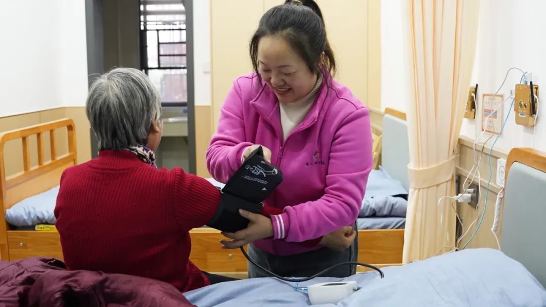 為老人檢查身體 “這一套智能醫療設備集成了多種功能,可以檢測血壓、血氧、血糖等,床位也采用了智能床墊,能夠監測老人的睡眠情況?!比腭v養護中心的福建省伍心康養集團高級院長王潔說,“數據上傳系統,系統‘大小屏’互通,集成健康管理、信息服務等多種功能,在外子女打開手機APP就能知道父母的身體狀況?!?/span> 2024年初,光明社區引入榮獲“全國養老服務先進單位”的福建省伍心康養集團,以專業的運營模式及養老服務理念,立足“老有所依、老有所養、老有所樂”等多樣化個性需求,打造“嵌入式”養老“微機構”。目前,光明社區養護中心有各類床位46張,老年人助餐點、樂齡學堂、文化娛樂廣場、助浴室等空間一應俱全,可為周邊老人提供醫養、食宿、文娛等多樣化居家養老服務。 嵌入適老化的設施和資源,讓居家社區養老服務便利可及?!拔覀兂掷m深化公辦養老機構改革,加大社區嵌入式養老服務機構培育力度,提供社會化、專業化、分眾化養老服務,不斷構建‘一刻鐘’養老服務圈?!敝車胝f。 據悉,近年來,浦城積極探索公辦養老機構運營管理體制改革,17所鄉鎮敬老院實行公建民營運營,全縣可提供各類養老床位4200余張,其中機構養老床位2200張,護理型養老床位占比超過60%。此外,浦城還引進居家養老專業化服務企業,結合特殊困難老年人“平安通”服務試點項目,通過政府采購社會養老服務,有效提升城區3300多名“七大類老人”的養老品質。 下一步,浦城將深入推進國家級縣域養老服務體系創新試點,持續完善基本養老服務體系建設,著力構建布局合理、功能完善、運轉高效的縣鄉村三級養老服務網絡,探索可復制、可推廣、可持續的浦城經驗。(柳浪漫) |