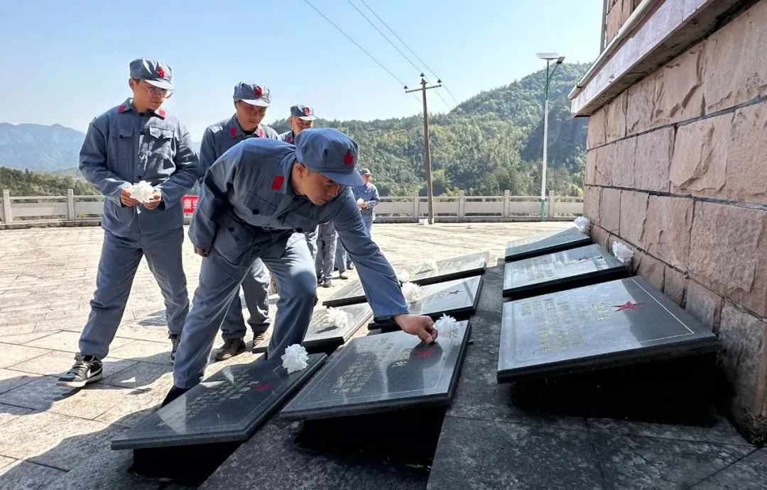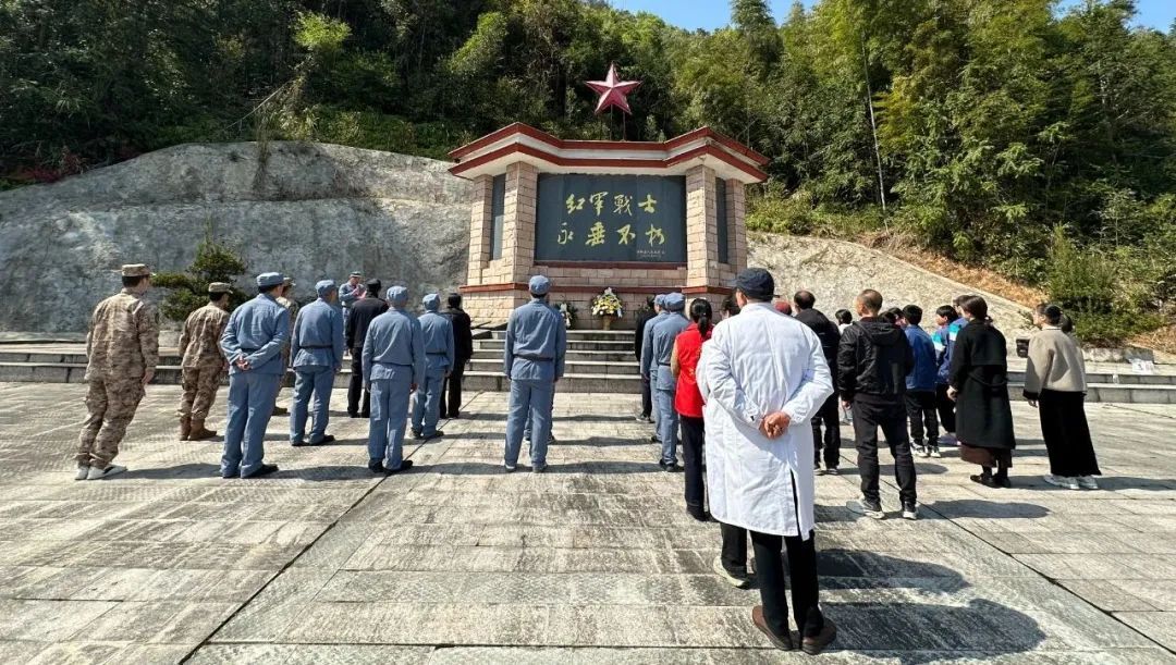 祭拜紅軍戰士緬懷革命先烈 4月2日,陽光明媚,退役軍人們身穿紅軍軍裝,齊聚均溪紅軍烈士陵園。大家整齊列隊,神情肅穆,向革命烈士鞠躬默哀,隨后敬獻鮮花。 浦城縣盤亭鄉均溪村是革命老區村,是中央蘇區閩浙省的重要部分,連接著中央蘇區與閩浙贛三省。1929年7月,浦城縣第一個工人黨支部在此成立。2017年11月,紅軍戰士陵園建成,安葬著15位紅軍烈士及3名紅軍戰士。