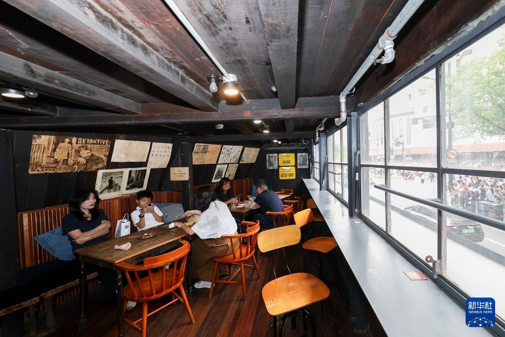 6月2日,人們在位于上海市黃浦區(qū)漢口路上的The Press咖啡館喝咖啡。 上海是全國咖啡門店數(shù)量最多的城市,咖啡文化早已融入這座城市的肌理。從繁華的市中心商圈到寧靜的鄉(xiāng)村,咖啡店的業(yè)態(tài)融合正成為一種新趨勢。其中,“咖啡+自然+文化”的創(chuàng)新模式,成為眾多上海咖啡門店的選擇,為文旅消費注入了強勁的新動力。 新華社記者 王翔 攝 |