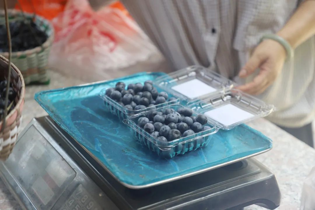 親手采摘的滿滿一籃藍莓 “我們的藍莓園嚴格按照無公害綠色農產品標準進行管理,采摘期從6月上旬持續到8月上旬,歷時近三個月。”元之藍家庭農場負責人陳貴華說。 元之藍家庭農場擁有50畝藍莓種植基地,共栽種3000株藍莓樹,每株產量可達10-13斤。農場主營業務包括藍莓種植和苗木銷售,目前新鮮藍莓的銷售價格為35元/斤。