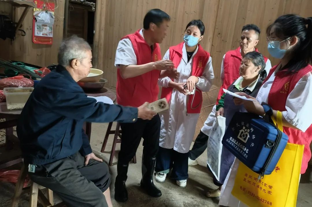 管厝衛(wèi)生院黨支部黨員先鋒隊 服務(wù)中,黨員先鋒隊為簽約村民進(jìn)行血壓、血糖測量、心肺聽診等基礎(chǔ)健康檢查,耐心詢問日常飲食、近期身體狀況及用藥情況,結(jié)合檢查結(jié)果給予個性化健康指導(dǎo)和疾病預(yù)防建議。針對患有慢性病的簽約居民中血壓、血糖等控制不達(dá)標(biāo)的情況,提出調(diào)整用藥方案,反復(fù)叮囑日常注意事項,將專業(yè)的醫(yī)療服務(wù)延伸至群眾家中,實現(xiàn)“零距離”健康服務(wù)。