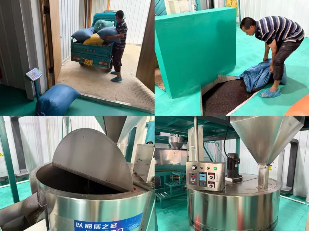 壓榨環節:配備24臺智能榨油機,采用電磁炒鍋自動控溫,確保油料品質穩定;振動排渣過濾機實現連續過濾,省去人工清洗環節,日處理原料可達1000公斤。 精煉環節:27臺304不銹鋼設備物理精煉,無化學添加,配備板框過濾機與降溫盤管,可同步生產一級、二級油品。 灌裝環節:5臺自動灌裝設備精準定量,成品油直接分裝至2個大型儲油罐,全程僅需人工放置空瓶,效率提升80%。
