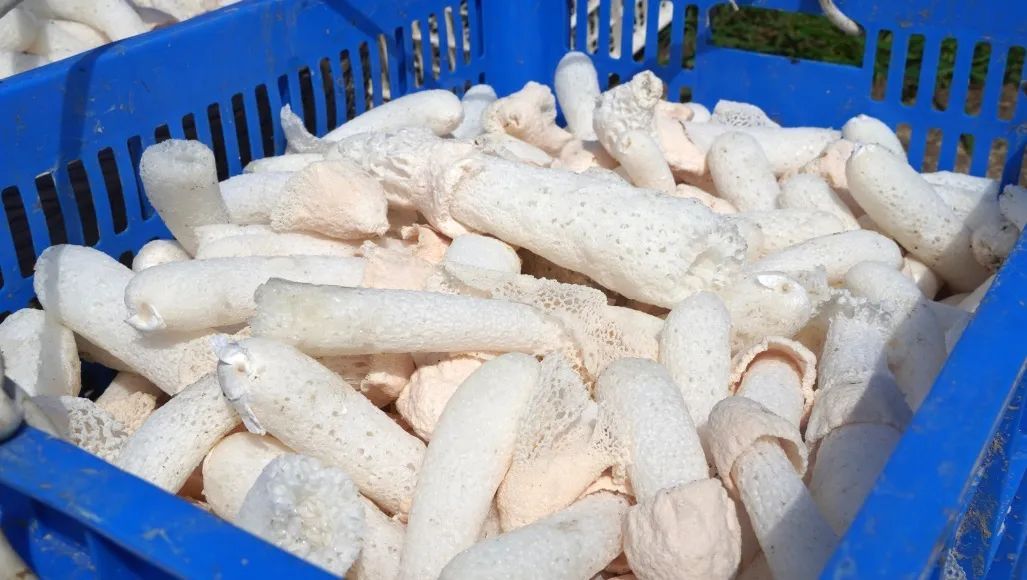 日前,臨江鎮(zhèn)山后村竹蓀種植基地化作一片“白色芭蕾舞臺(tái)”——雪白的菌裙在晨露中舒展如舞者裙擺,而村民則在限時(shí)4小時(shí)里,忙著“采收芭蕾”。