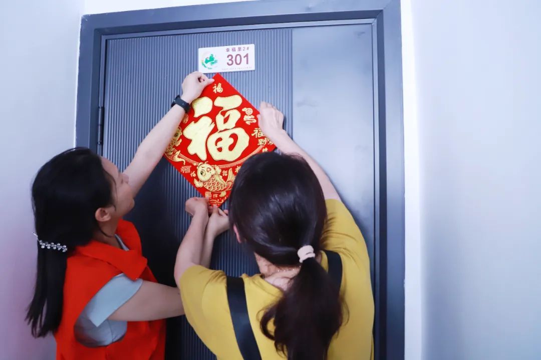 ▲村民入住“幸福里”社區(qū)并在門口貼福 “這里住宿條件好,環(huán)境好,住著舒服!”今年73歲的張香芝正在辦理簽約入住的手續(xù),張香芝感慨道,因為兒女都在外地工作,就她一個人在老家里常感孤獨,入住“幸福里”社區(qū)老人們有伴也可以相互照應(yīng)。 “我的老家在仙陽山際村,平時出行、看病都很麻煩。現(xiàn)在國家政策這么好,關(guān)心照顧我們老人家,讓我一家人搬到這住,一室兩廳70多平方米,一年只要三千多點?!闭诎釚|西入住仙陽“幸福里”社區(qū)1棟的楊邦成和妻子喜笑顏開。