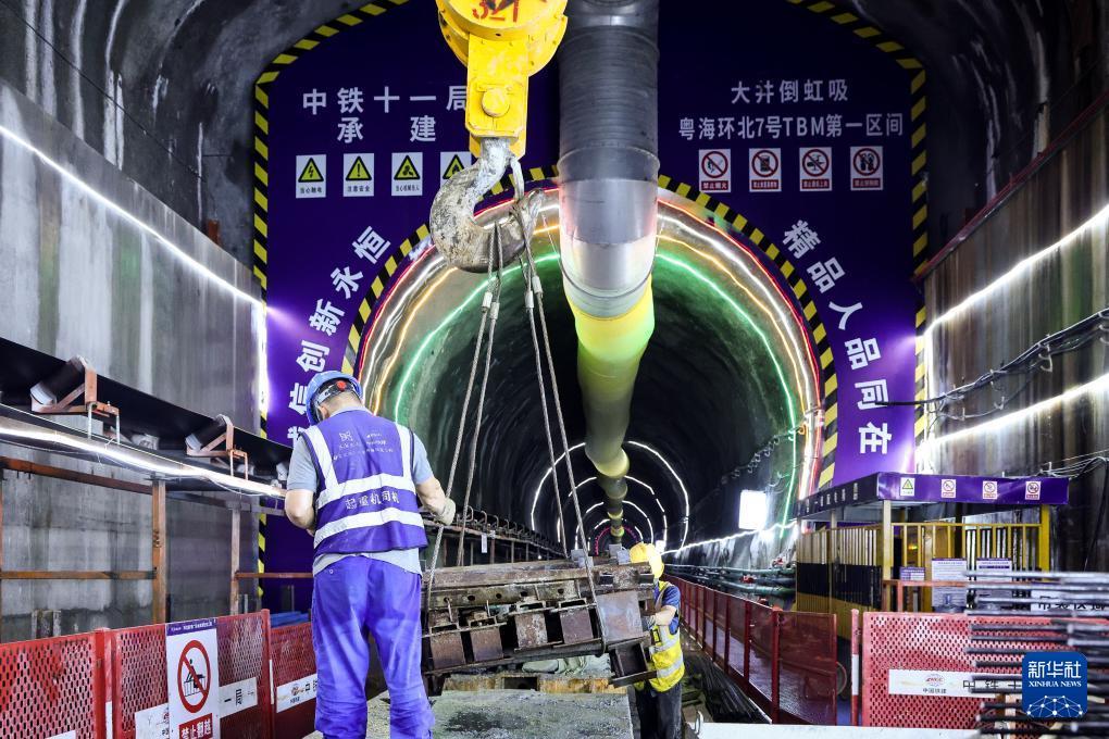 施工人員在大仁支洞工區干線隧洞TBM工區吊裝物資(8月11日攝)。 日前,中鐵十一局承建的環北部灣廣東水資源配置工程B2標“粵海環北7號”全斷面敞開式硬巖掘進機(TBM)掘進突破700米,項目施工從啟動適應期邁入高效推進期。 環北部灣廣東水資源配置工程是國家水網骨干工程之一,建成后將優化區域水資源配置格局。 新華社記者 劉大偉 攝