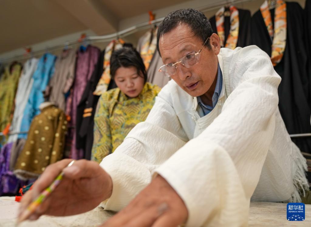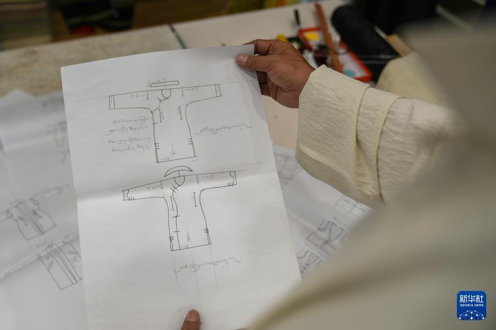 洛桑麥朗手繪的藏裝制作要領(lǐng)(8月15日攝)。 在拉薩雪堆白傳統(tǒng)手工藝術(shù)學(xué)校,60歲的西藏自治區(qū)級(jí)非物質(zhì)文化遺產(chǎn)項(xiàng)目藏族服飾(拉薩服飾)代表性傳承人洛桑麥朗,與學(xué)徒一道研究、制作藏裝。從藝四十余載,他培養(yǎng)了百余名弟子,還參與編撰教材、建立藏族服飾數(shù)據(jù)庫(kù)等工作。在他的巧手下,新式藏裝將傳統(tǒng)與現(xiàn)代交融,讓非遺技藝與現(xiàn)代審美碰撞,成為街頭一道靚麗的風(fēng)景。 新華社記者 晉美多吉 攝