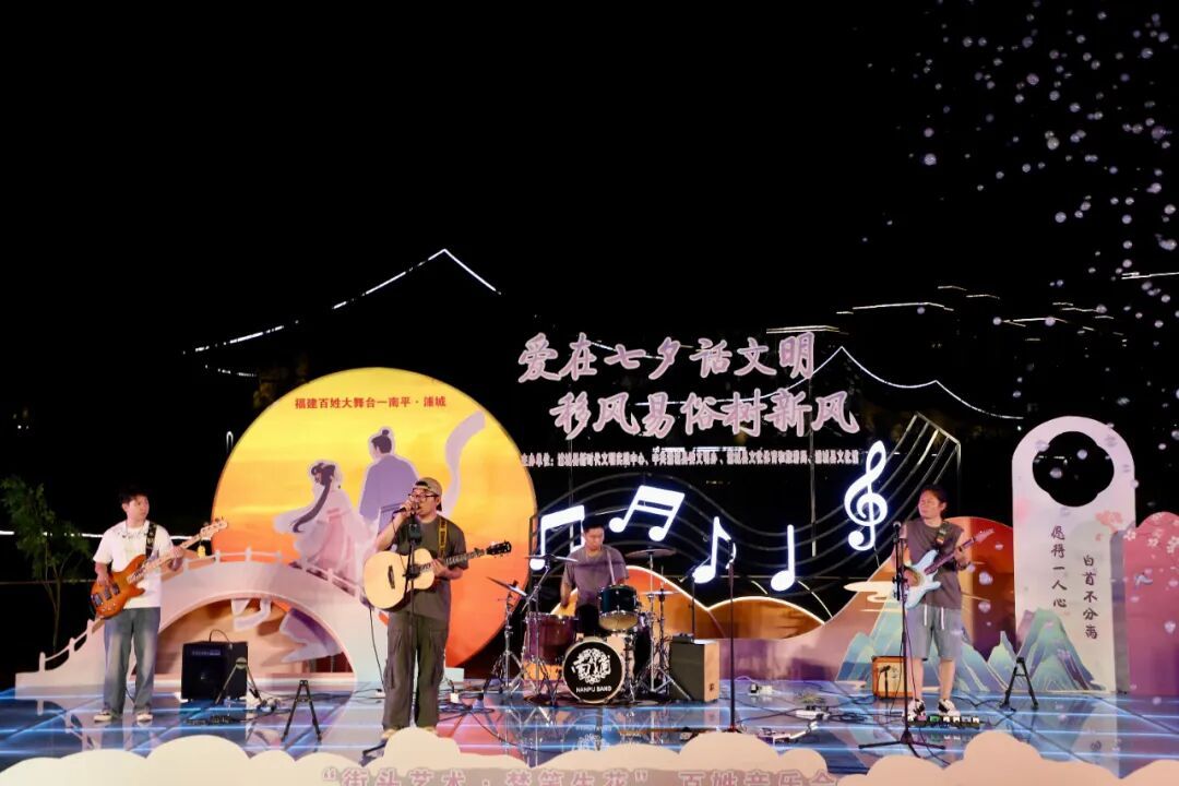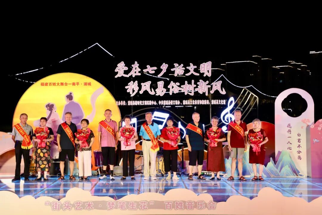 七夕佳節,浦城縣在夢筆文化公園親水平臺舉辦了以“愛在七夕話文明 移風易俗樹新風”為主題的系列活動,融合趣味游戲、金婚夫妻故事分享、移風易俗互動與文藝演出等多維形式,為群眾帶來一場既有傳統文化底蘊,又充滿時代溫度的七夕體驗。