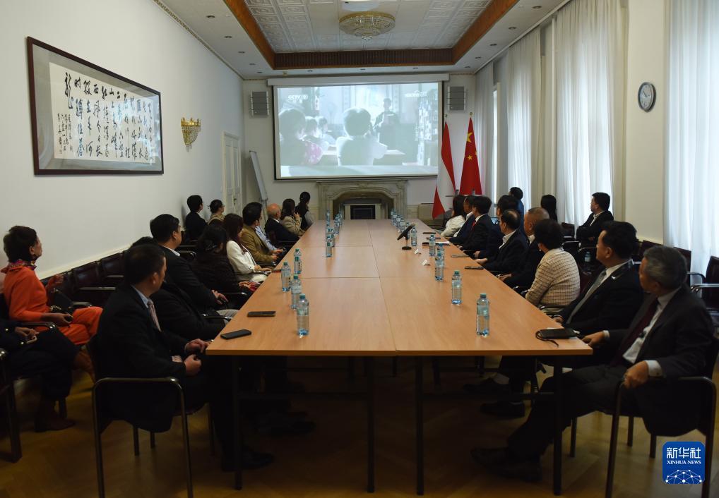 10月25日,在位于奧地利維也納的中國駐奧地利大使館,與會人員觀看《臺灣1945》紀錄片。新華社記者 賀燦鈴 攝 |
