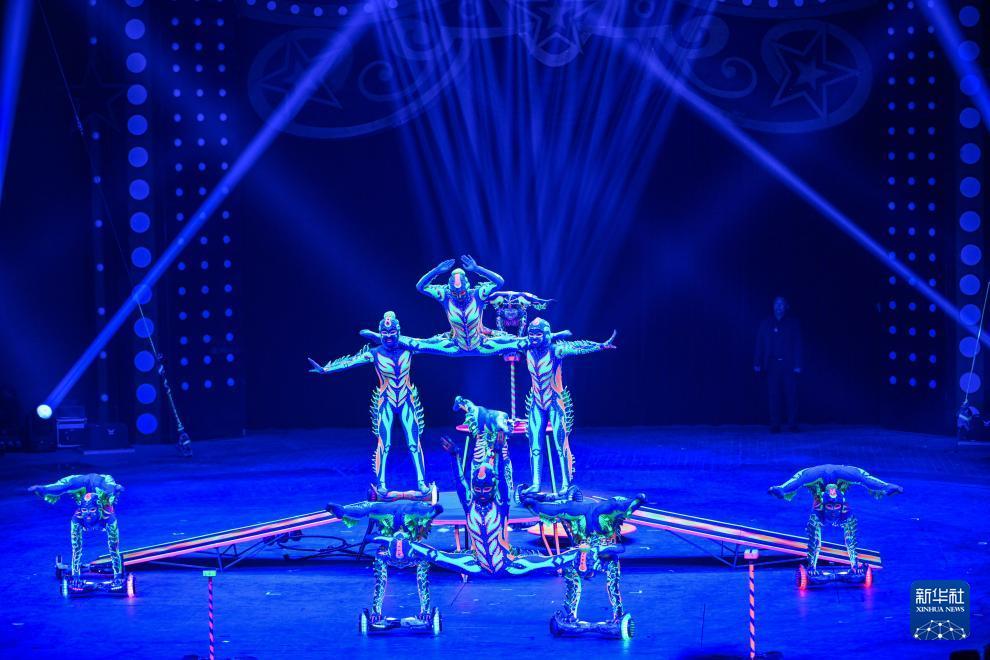 11月1日,演員在第八屆中國國際馬戲節開幕式上表演。 11月1日,第八屆中國國際馬戲節在廣東橫琴長隆卡卡劇場開幕。本屆馬戲節以“世界馬戲 匯聚橫琴”為主題,匯聚了來自全球的18支頂尖馬戲團隊,近500名藝術家同臺獻藝,共享國際最新馬戲藝術發展成果。 新華社記者 肖恩楠 攝