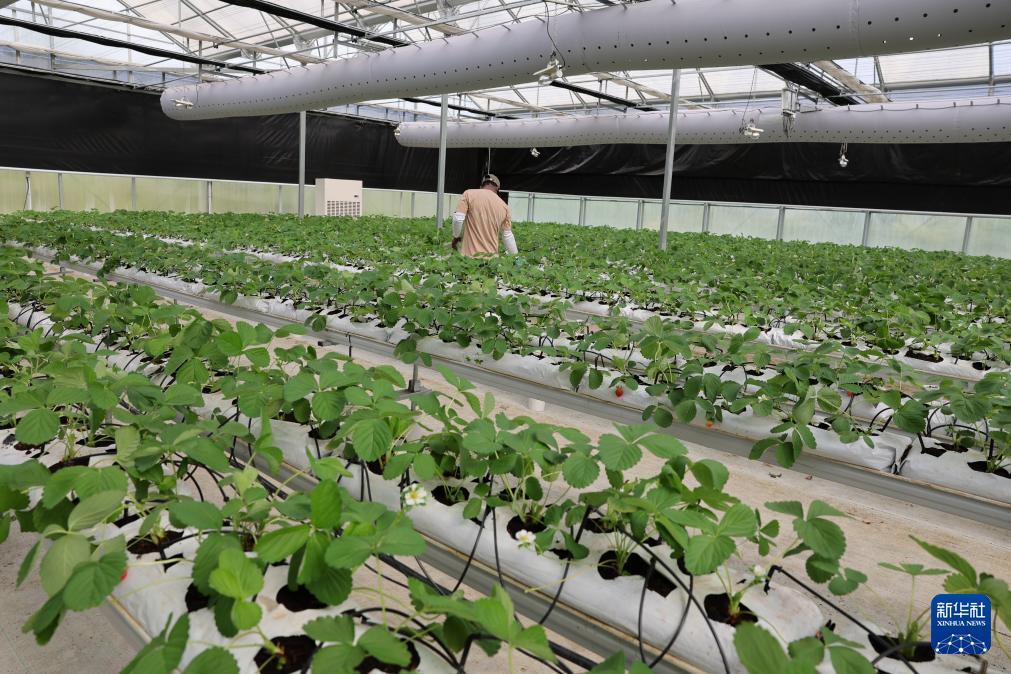 這是11月3日在文萊斯里巴加灣市郊一處農(nóng)業(yè)科技產(chǎn)業(yè)園拍攝的運(yùn)用中國(guó)農(nóng)業(yè)技術(shù)和設(shè)備培育出的草莓。 近年來(lái),文萊政府不斷深化與中國(guó)在農(nóng)業(yè)領(lǐng)域的交流合作。在文萊斯里巴加灣市郊一處農(nóng)業(yè)科技產(chǎn)業(yè)園,通過(guò)中國(guó)沙培技術(shù)成功種植的網(wǎng)紋蜜瓜近日喜獲豐收,在當(dāng)?shù)厥袌?chǎng)很受歡迎。此外,該產(chǎn)業(yè)園還利用中國(guó)先進(jìn)農(nóng)業(yè)技術(shù)及農(nóng)業(yè)設(shè)備開(kāi)展草莓、茄子、辣椒等果蔬的培育種植,在為文萊市場(chǎng)提供高品質(zhì)果蔬產(chǎn)品的同時(shí),進(jìn)一步推動(dòng)文萊農(nóng)業(yè)現(xiàn)代化發(fā)展。 新華社記者 李萌 攝