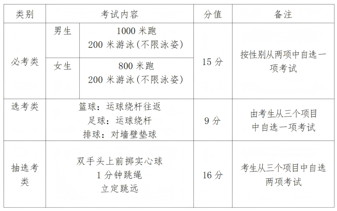 福建三地體育中考項(xiàng)目確定