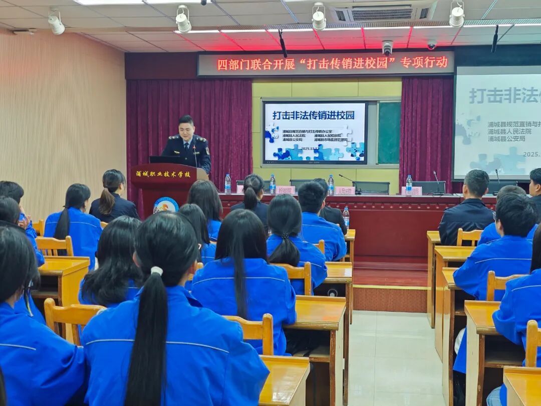 11月12日,浦城縣市場(chǎng)監(jiān)管局聯(lián)合縣公安局、檢察院、人民法院在浦城縣職業(yè)技術(shù)學(xué)校開(kāi)展“打擊非法傳銷進(jìn)校園”普法宣傳活動(dòng),進(jìn)一步筑牢校園防范傳銷安全防線,守護(hù)在校學(xué)生身心健康與財(cái)產(chǎn)安全。