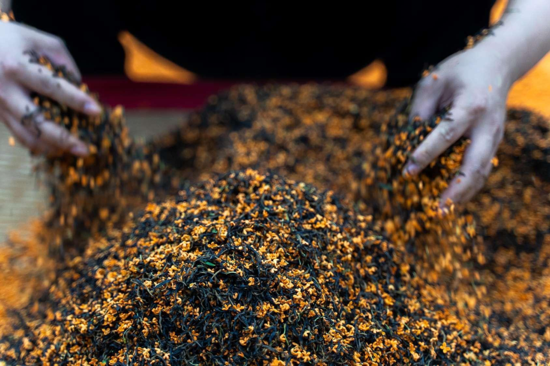 閩北浦城,丹桂飄香,茶韻綿長。作為“中國丹桂之鄉”,浦城不僅擁有悠久的桂花種植歷史,更孕育出了獨具特色的茶類臻品——丹桂花茶。一盞丹桂花茶,茶湯清澈透亮,桂香馥郁持久,茶韻與花香交織,演繹著“茶桂共生、香韻雙絕”的杯中詩篇。 千百年來,浦城茶農秉持著“茶引花香”的古法智慧,將秋日枝頭的丹桂與四季常青的茶坯巧妙結合,以獨特的二窨制技藝鑄就一味東方香韻。如今,在茶文化、茶產業、茶科技“三茶統籌”理念的引領下,這盞茶成為鏈接文化、產業、科技與情誼的芬芳紐帶。