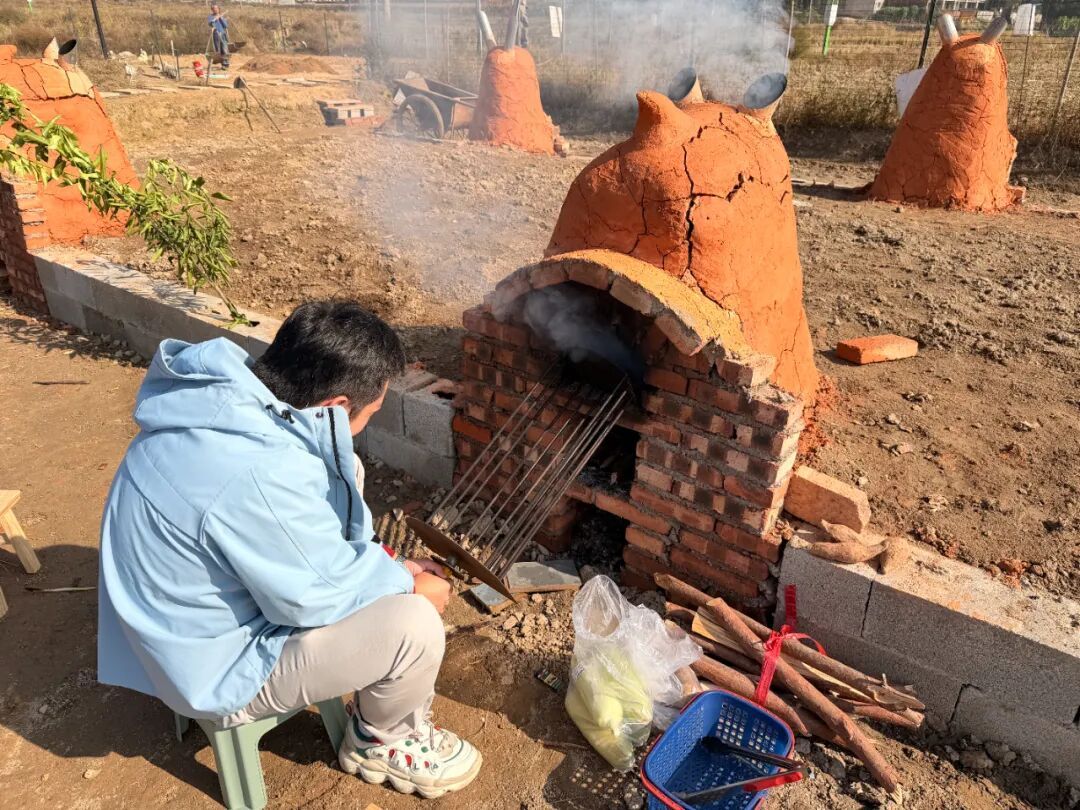 在蓮塘鎮馬西村共享菜園烤地瓜 與此同時,在馬西村共享菜園,烤地瓜的甜香彌漫在空氣中。幾座剛搭建好的土窯,經過大家的創意改造,披上了可愛的卡通“外衣”,升級為備受追捧的“瓜瓜窯烤場”。剛洗凈手上泥巴的親子家庭,又圍聚在溫暖的窯邊,等待著品嘗那份軟糯香甜。 馬西村黨支部書記何晨介紹道:“共享菜園是馬西村黨支部領辦的合作社打造的一個研學項目,菜園的設計權我們交給了大家,‘瓜瓜窯烤場’只是我們親子項目的開始。讓大家玩得開心,才是我們鄉村活力的來源?!?/span>
