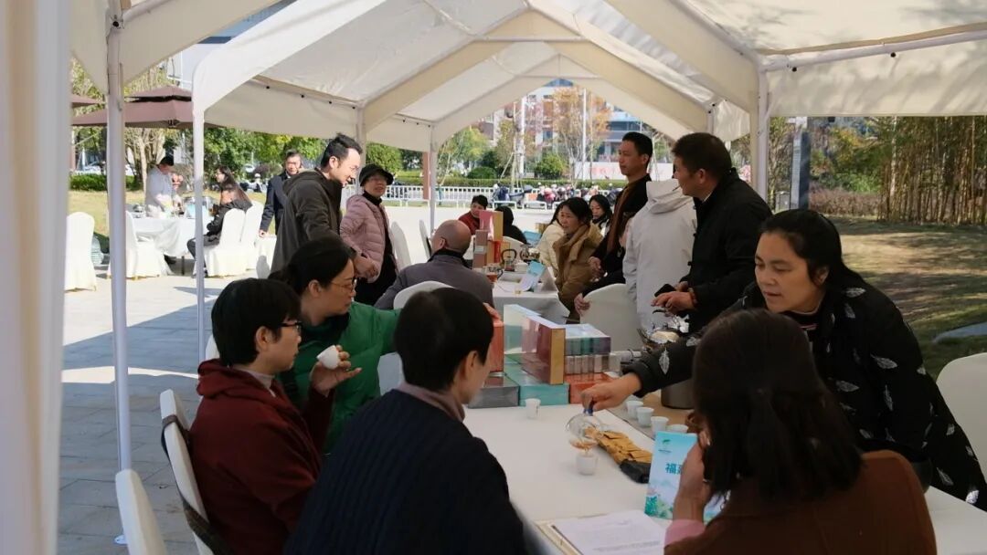 活動現場 來往群眾親身感受丹桂花茶茶香與桂香完美交融的獨特風味,了解“浦城丹桂花茶”公共品牌背后的故事與發展,與愛茶之人共品香茗,分享感受。同時,現場更有浦城丹桂花茶制作技藝、丹桂花茶窨制技藝非遺代表性傳承人參加活動,講述制茶背后的點滴趣事。江山市“田園翁·興農”科技服務團組織30余名老農技專家、茶葉經營主體及青年農創客參與活動,欣賞茶藝展演,細品丹桂花茶,與浦城茶商深入交流,借鑒浦城的科學制茶工藝、茶文化傳承路徑及“茶+文旅”融合發展模式,為江山農旅融合發展汲取經驗。