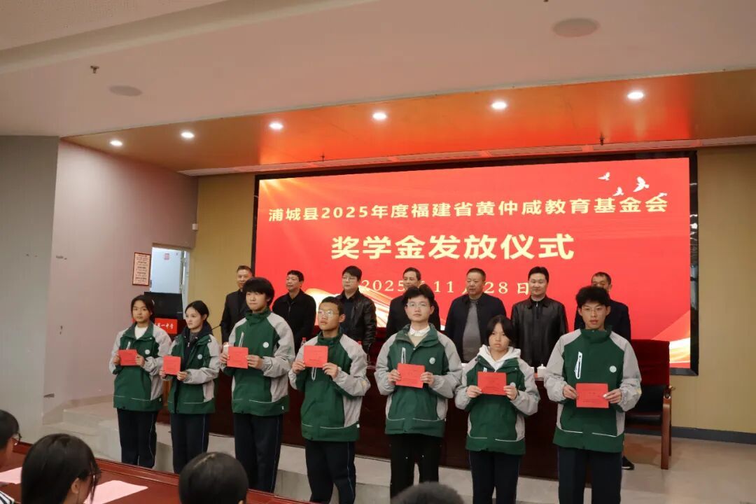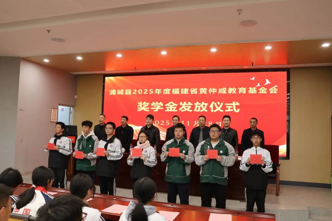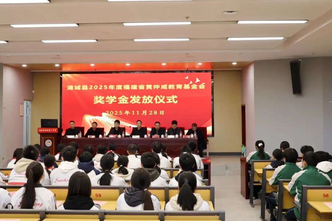 11月28日,浦城縣2025年度福建省黃仲咸教育基金會獎學金發放儀式在浦城一中育賢校區舉行。來自浦城一中、浦城二中、浦城三中、仙陽中學、榮華實驗高中等5所學校的63名品學兼優的受獎學生及帶隊老師共同參加了此次活動。
