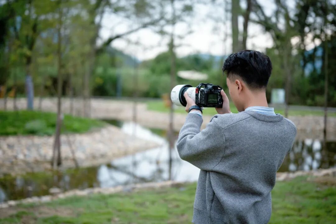 拍攝瑞安村溪林里濕地公園 “如此富有層次感的光影亦是少見,濕地的晨霧、水波、植被與光線完美融合,每一處都是天然的構圖選擇。”王鑫一到溪林里濕地公園,就被這里的自然風光與人文底蘊深深吸引,連綿的青山、蒼翠的古樹、質樸的笑容,都成了他眼中絕佳的拍攝素材。 作為一名經驗豐富的影視工作者,他曾走南闖北,參與拍攝制作多部電影和宣傳片。但當他踏上瑞安村的土地,他意識到這里的故事更值得被記錄。拿著相機在村里走了幾天,他拍攝晨光中的古樹,記錄村民勞作的場景,捕捉孩童嬉戲的笑臉,這些美好的景象,都成為他創作的絕佳素材。 看似拿著相機不經意的拍攝,其實藏著許多“玄機”。拍攝階段,他精心規劃多機位布局:用無人機捕捉瑞安溪林里的晨霧,手持云臺貼近地面,記錄樹干縫隙里的青苔、溪澗中嬉戲的魚蝦,用固定機位定格游客玩耍的溫情瞬間。