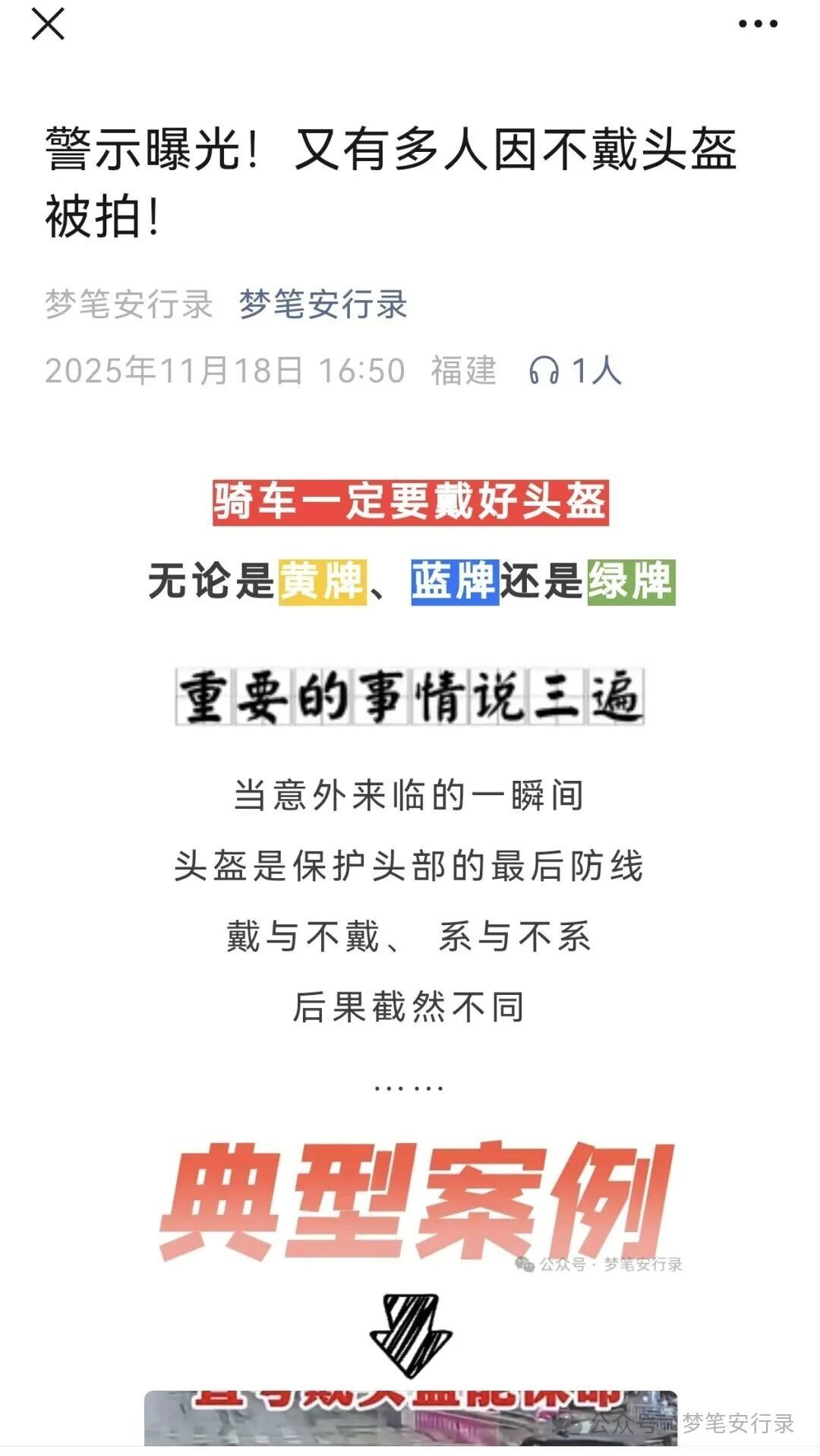 “頭盔是騎行者遇到危險時的最后一道防線。”為進一步提升電動車騎乘人員安全防護水平,浦城公安交警持續加強“一盔一帶”安全守護行動。 對于“戴了頭盔卻不戴”的行為,進行重點糾正,督促其立即佩戴。對于多次勸導無效或拒不配合的,依法予以處罰。引導群眾養成“不帶盔,不騎行”的文明出行習慣。 優化交通設施 提升道路通行安全