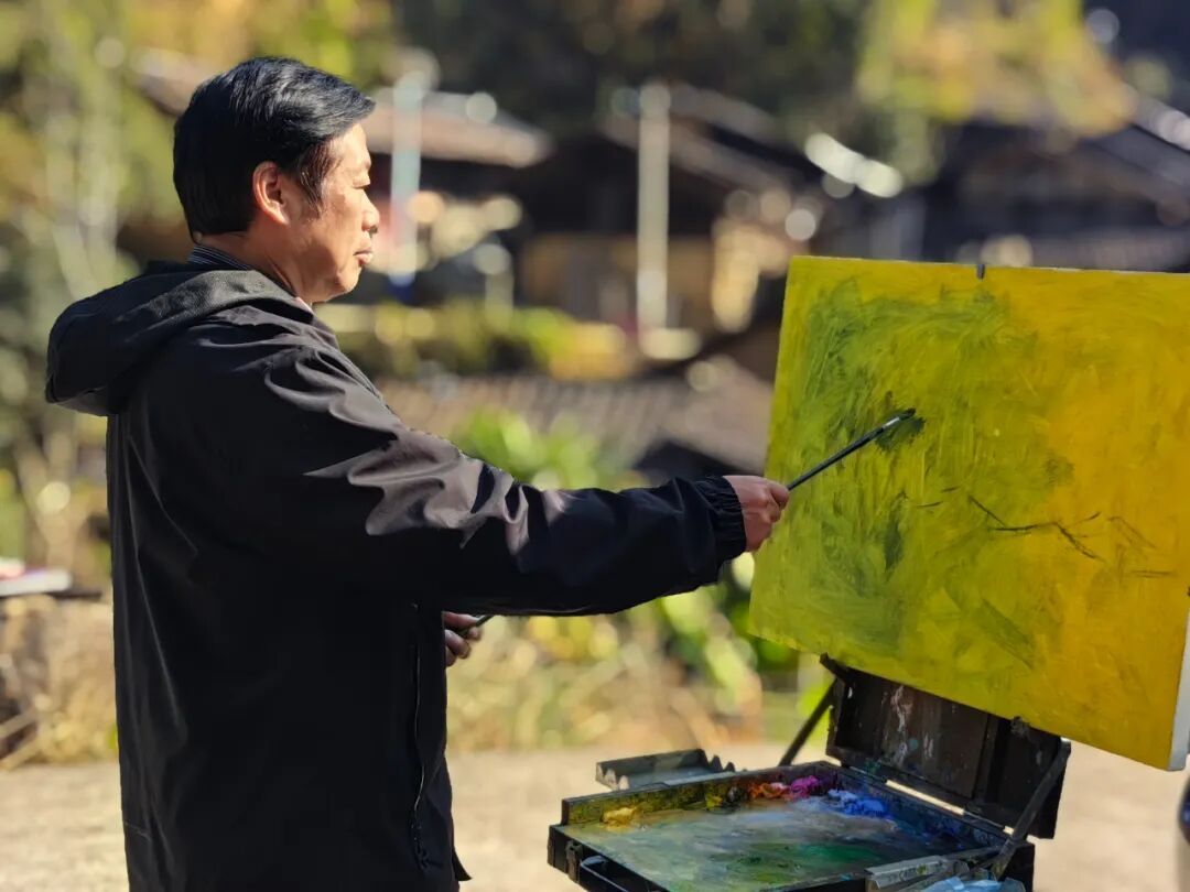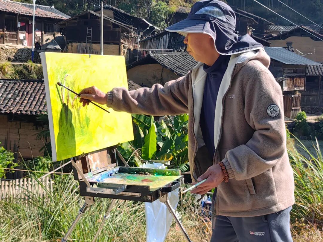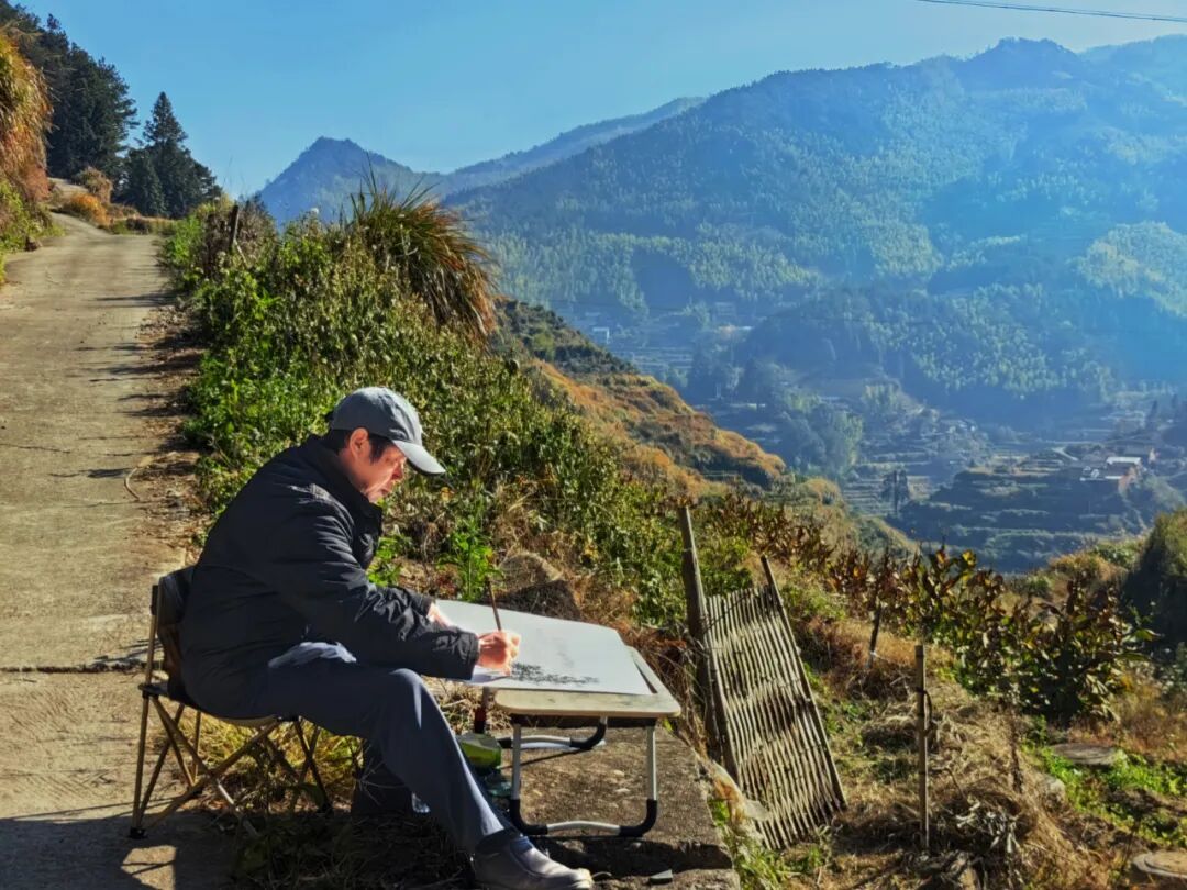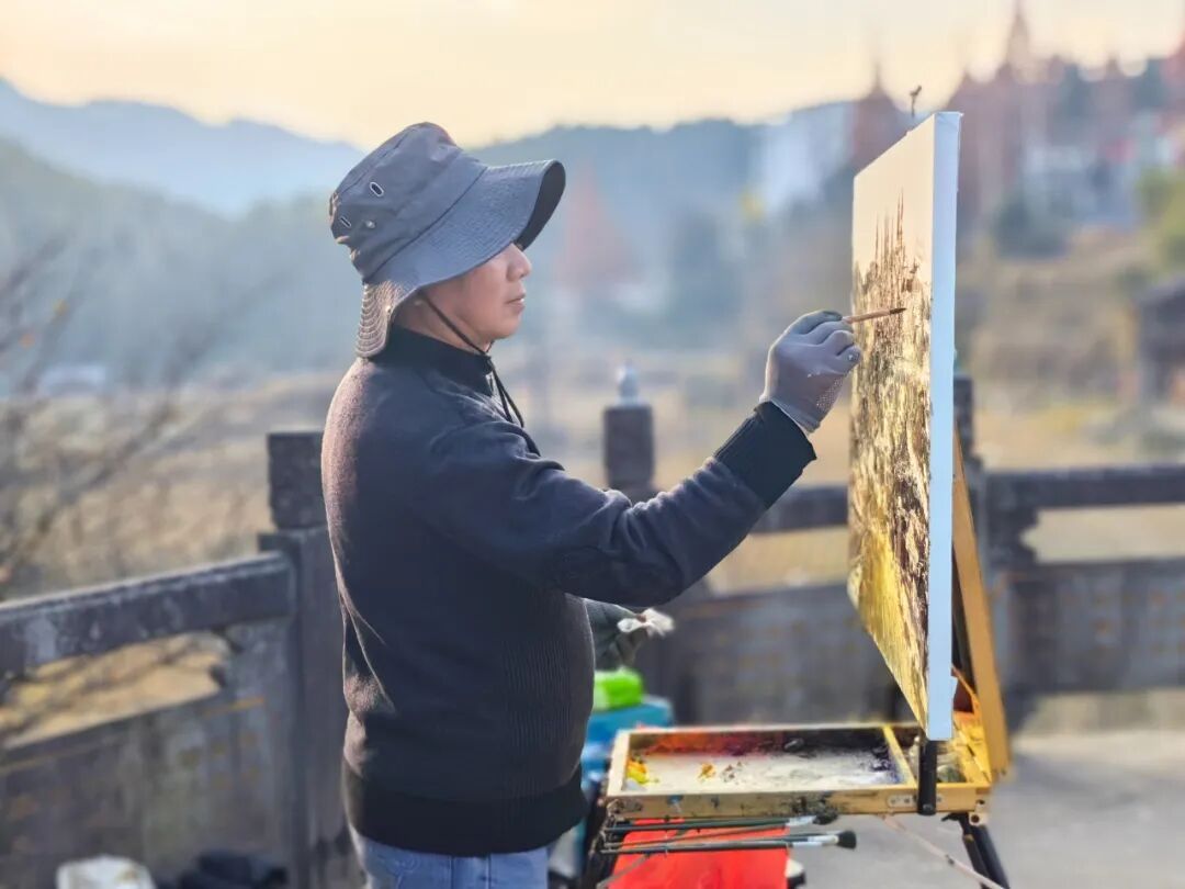 紅紙迎春,筆走福至 丹青行野,紙上田園 午后陽光正好,畫家們背起畫板、拎起小馬扎,沿著楓嶺古驛道分組“打卡”。有的蹲在田埂,以稻茬作前景,遠(yuǎn)處黛瓦粉墻入畫;有的鉆進(jìn)百年古樹群,讓金黃落葉在宣紙上“二次綻放”;還有的直接把畫架支在溪澗邊,聽水聲調(diào)色,任山風(fēng)“修改”線條。三個(gè)小時(shí)后,十幾幅“楓溪冬野”速寫整齊亮相氧8大廳:山嵐、炊煙、古樹、石拱橋……每一幅都在“喊”同一句話——“把鄉(xiāng)村帶回家”。